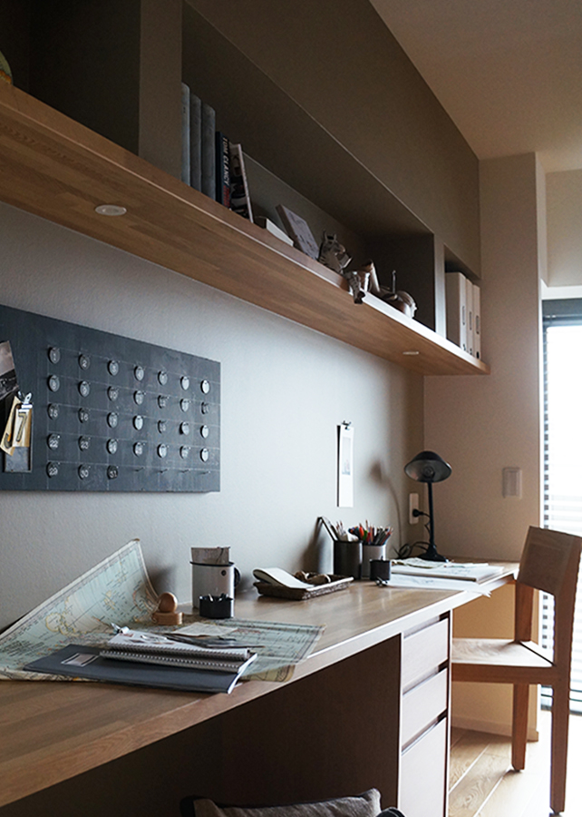 空間に合わせたオリジナルの家具や壁面収納、造作家具のデザインも承ります。素材、色、仕上げ、デザインをその空間のためだけに一つ一つデザインし、高い技術を持つ家具工房にて制作いたします。取付けも熟練した技術と経験を持った専任が行いますのでご安心ください。