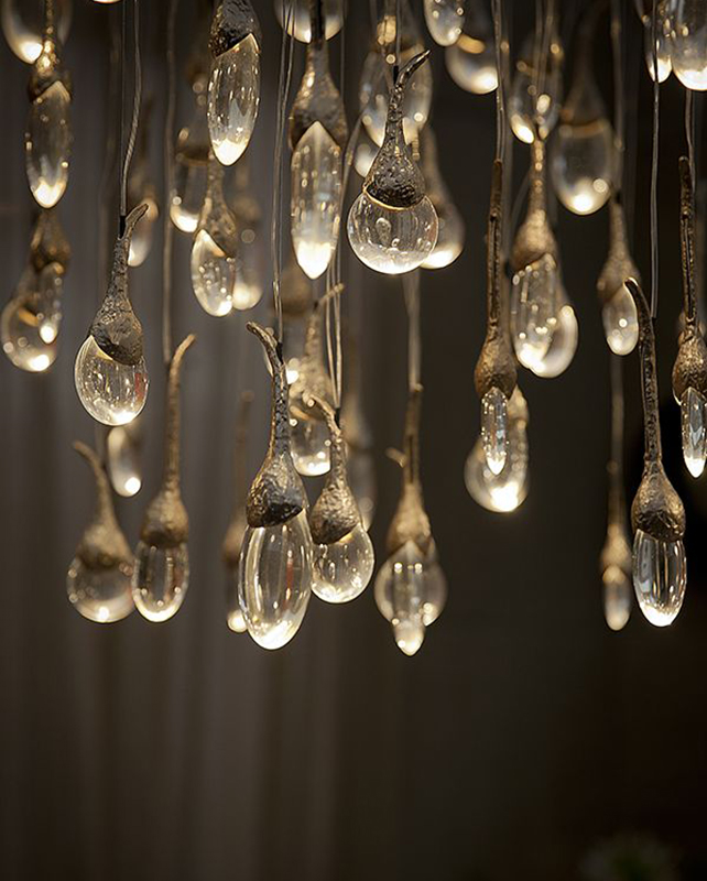 OCHREの名を一躍有名にしたDrizzle Chandelier。その名の通りガラスのしずくがまるで本当に滴るようなデザインのシャンデリアは、世界中のデザイナーの注目の的となりました。このシャンデリアが世界に出るきっかけとなったのがパリでの展示会メゾン・エ・オブジェ。美しいシャンデリアに目を奪われそのブースから立ち去れないでいたその時、あるバイヤーが値段を見てどうしてこんなに高いのか尋ねるのが聞こえてきました。そんな野暮な質問にデザイナーのSolenneは、「Because it's beautiful.」とサラリ。それがこのシャンデリアを日本で紹介しようと決めた瞬間でした。