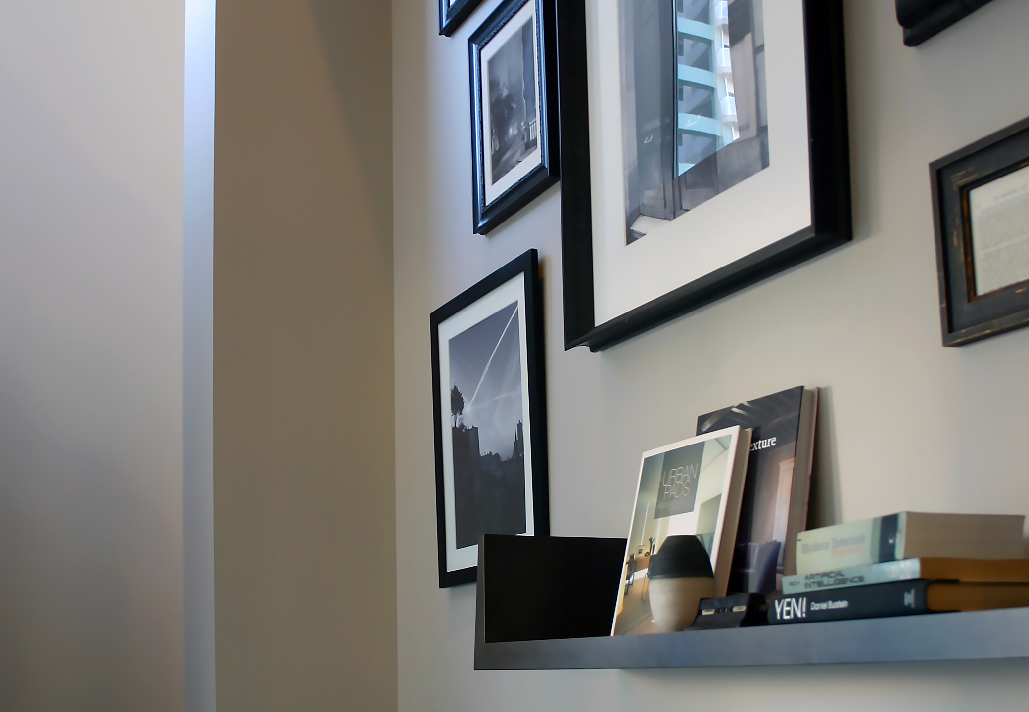 壁に飾られた動きのあるアートや雑貨をまとめ、インテリアに一体感をもたらしてくれます。