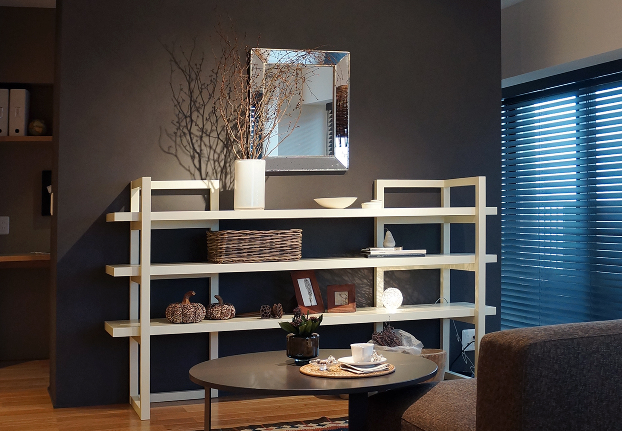 空間を区切るだけでなく、アートを飾る背景にも、家具や小物をすっきりと魅せるインテリアにもなる壁です。