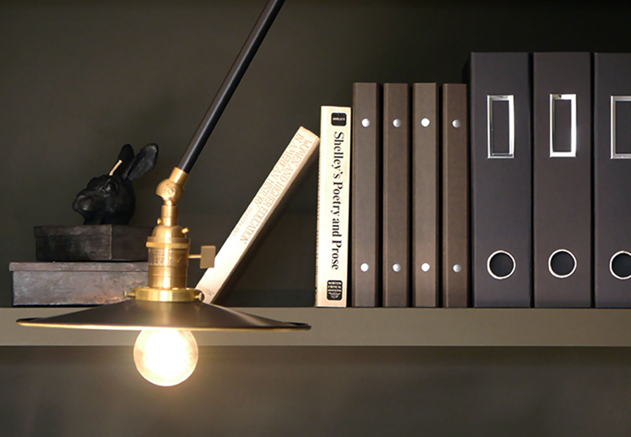 大人の隠れ家のような落ち着きと、少しの遊び心が感じられる書斎スペースです。